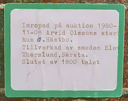 av smeden Elov Thorslund i Särsta/Torsåker vid